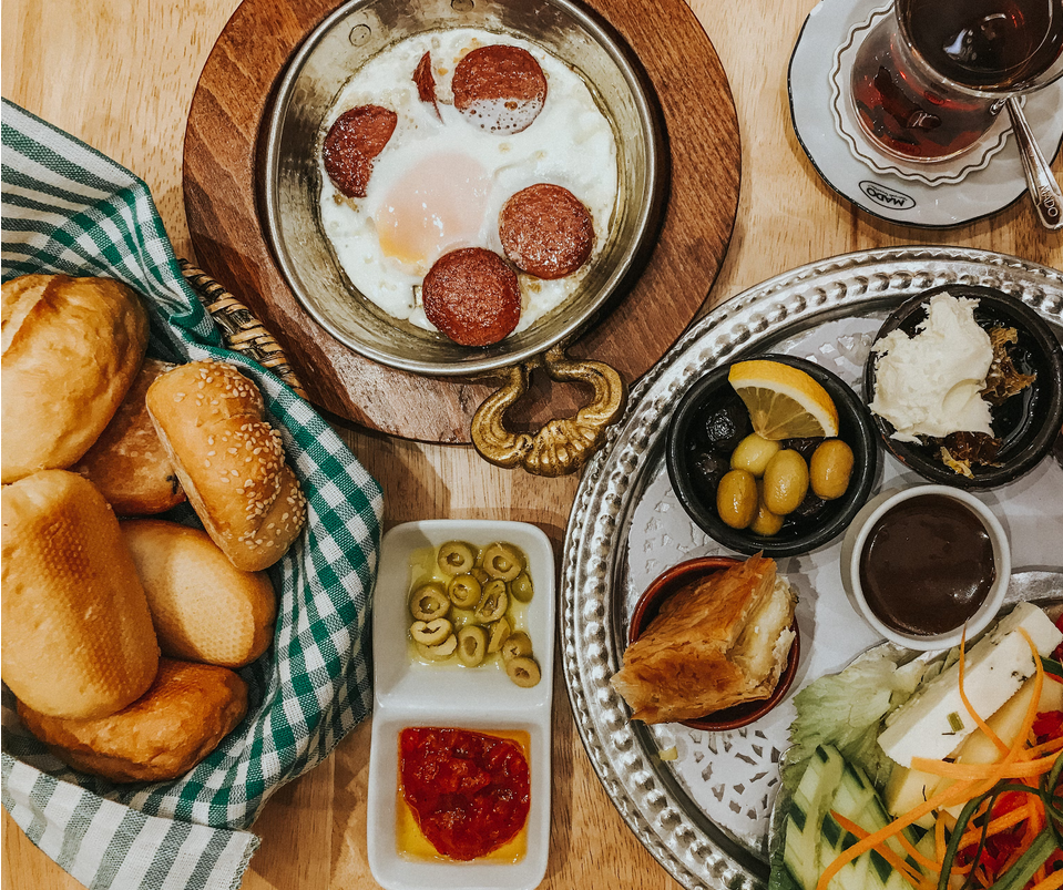 Что-что, а вкусно поесть в Турции любят, и праздник живота начинается прямо с утра. Стол плотно заставляется подносами и чашками, с которых каждый перекладывает себе в тарелку все, что пожелает душа.