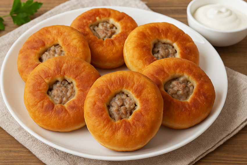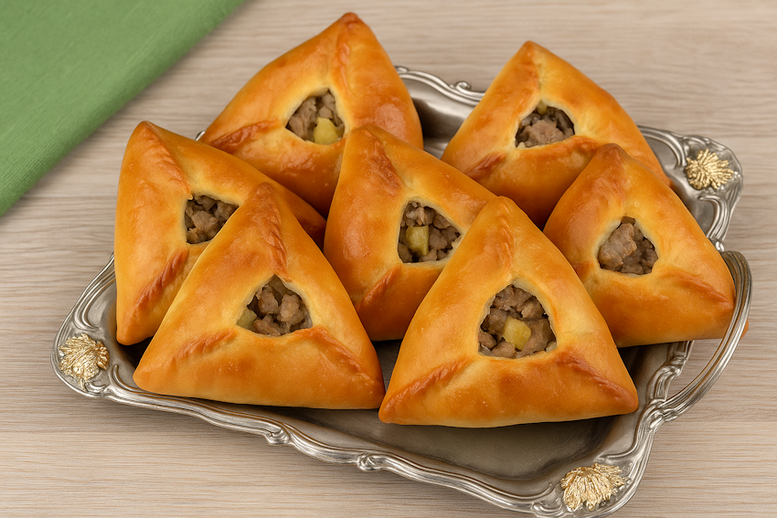 Беляши — еще одна разновидность пирожков с мясной начинкой. Своим это блюдо по праву считают татары, башкиры и калмыки, хотя сегодня беляши пекут практически в любом российском регионе. По составу они похожи на эчпочмаки, но если татарские пирожки всегда треугольные, то беляши могут быть и треугольными, и круглыми. К тому же их не пекут, как эчпочмаки, а жарят на сковородке. Классические беляши раньше делались открытыми – с небольшим отверстием посередине, но сегодня повсеместно встречаются и полностью закрытые варианты.