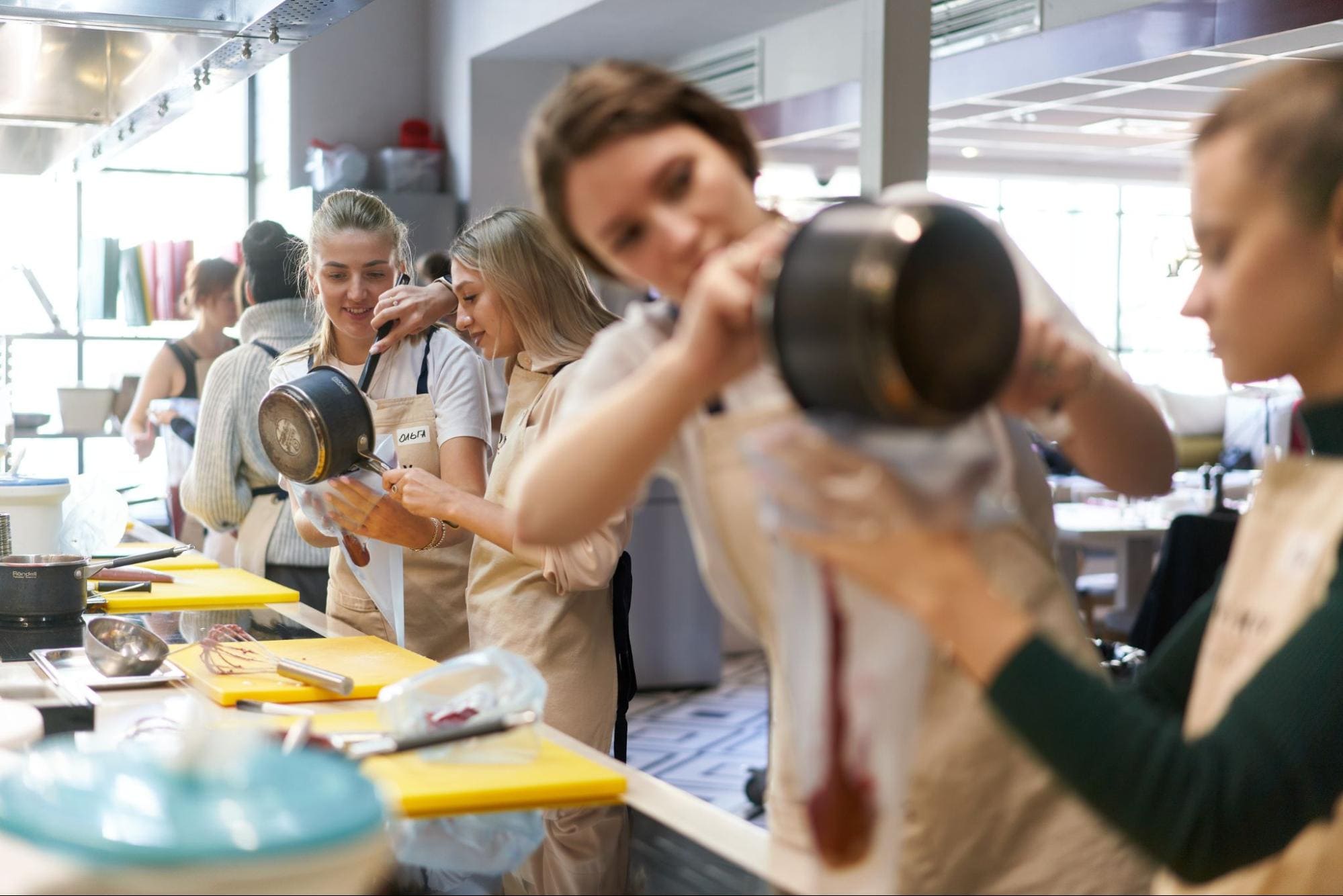 Особенно хорошо работает формат, в котором все вовлечены в процесс, а не просто наблюдают — например, кулинарные мастер-классы. Команда готовит ужин вместе под руководством опытного шефа, а потом угощается собственными блюдами, что делает еду еще вкуснее. У этого формата есть сразу несколько плюсов.